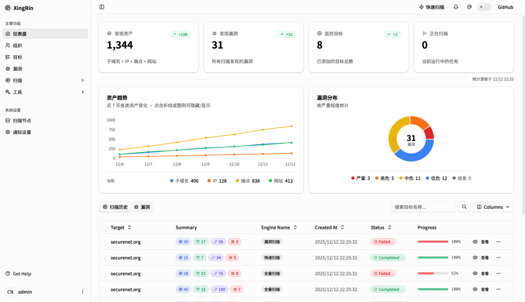 # 克隆项目git clone https://github.com/yyhuni/xingrin.git